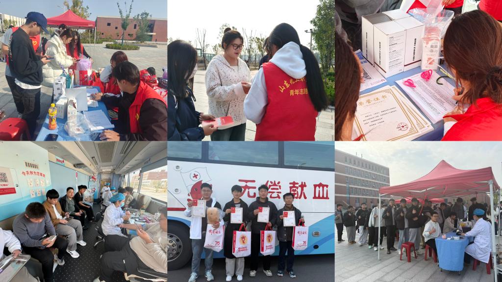 2025年10月28日至29日,山东化工职业学院在主校区图书馆北广场组织无偿献血活动,潍坊中心血站流动车工作人员与学校逐梦志愿服务队志愿者共同保障活动开展,众多符合条件的学生参与其中。